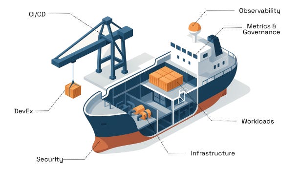 More precisely, it brings together the technologies an organization uses into golden paths that reduce cognitive load and enable self-service. I didn’t coin this term. That’s how the industry has referred to this concept for years, and I think the name captures well the essence of what we’re trying to achieve.